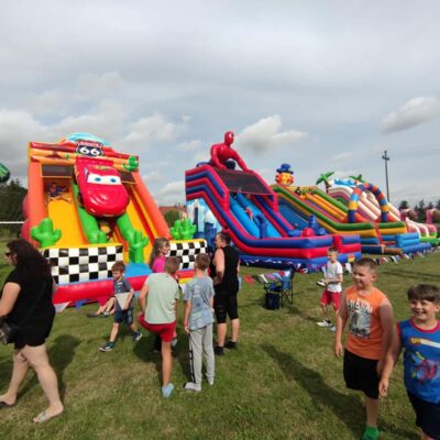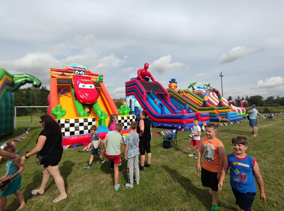 Główną atrakcją tego dnia w były oczywiście zamki dmuchane, które zapewniły wiele radości i zabawy. Na boisku w Jagodniku pojawiło się aż 8 dmuchanych konstrukcji. Była to wspaniała okazja, by spędzić czas na świeżym powietrzu, bawić się w gronie przyjaciół i rówieśników oraz cieszyć się z trwających właśnie wakacji. Dmuchane zamki i zjeżdżalnie mają jeszcze jedną zaletę. Zachęcają do aktywności fizycznej i ruchu, co z pewnością może mieć pozytywny wpływ na zdrowie i kondycję uczestników. Dla dzieci to doskonała okazja do nawiązania nowych przyjaźni i rozwijania umiejętności społecznych.