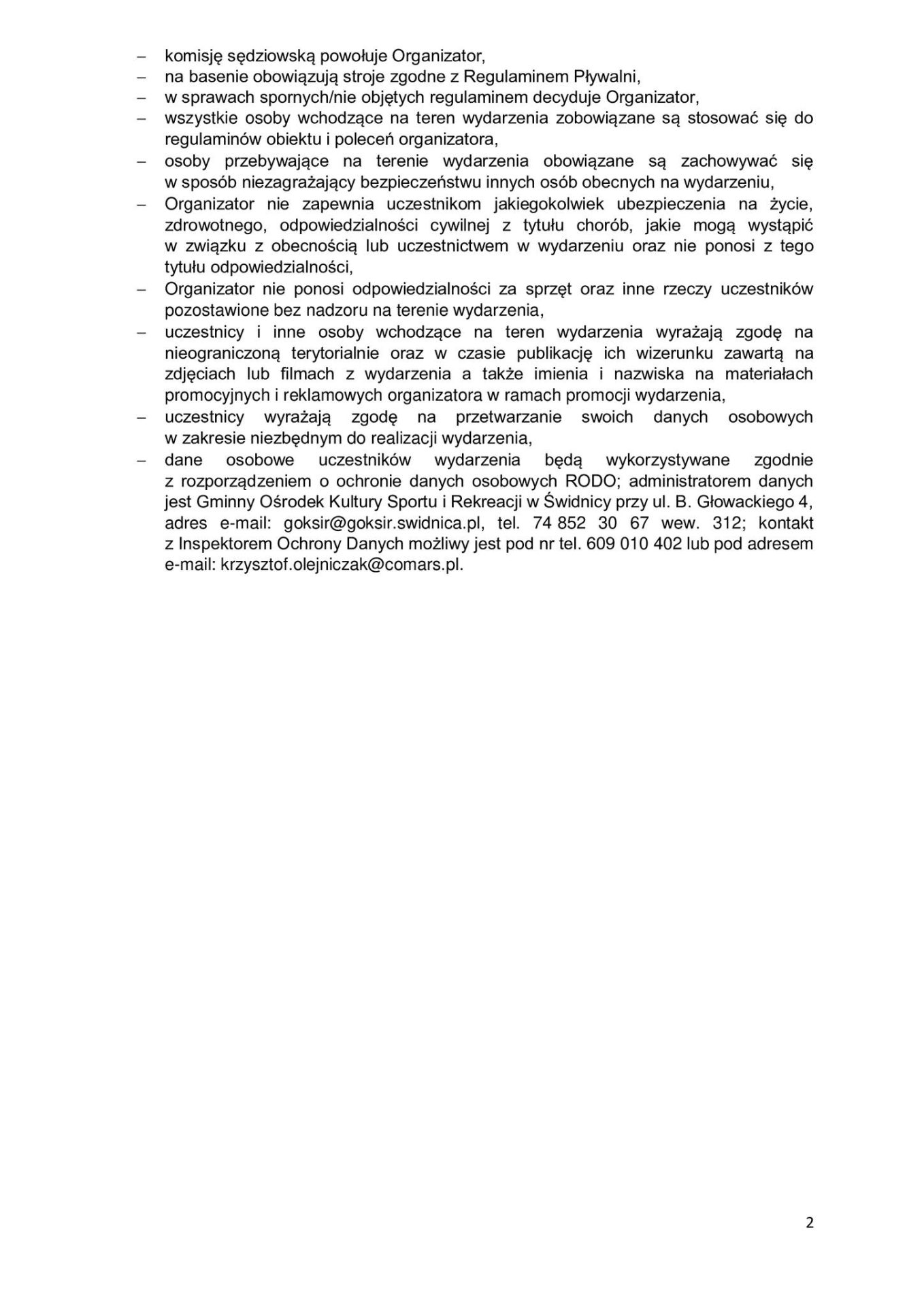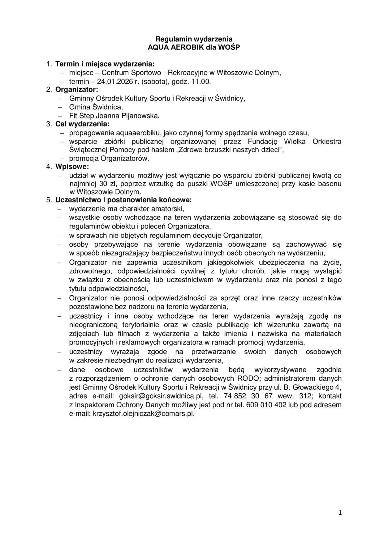 Wpisowe: udział możliwy po wsparciu zbiórki WOŚP kwotą minimum 30 zł, wrzutka do puszki WOŚP przy kasie basenu w Witoszowie Dolnym.