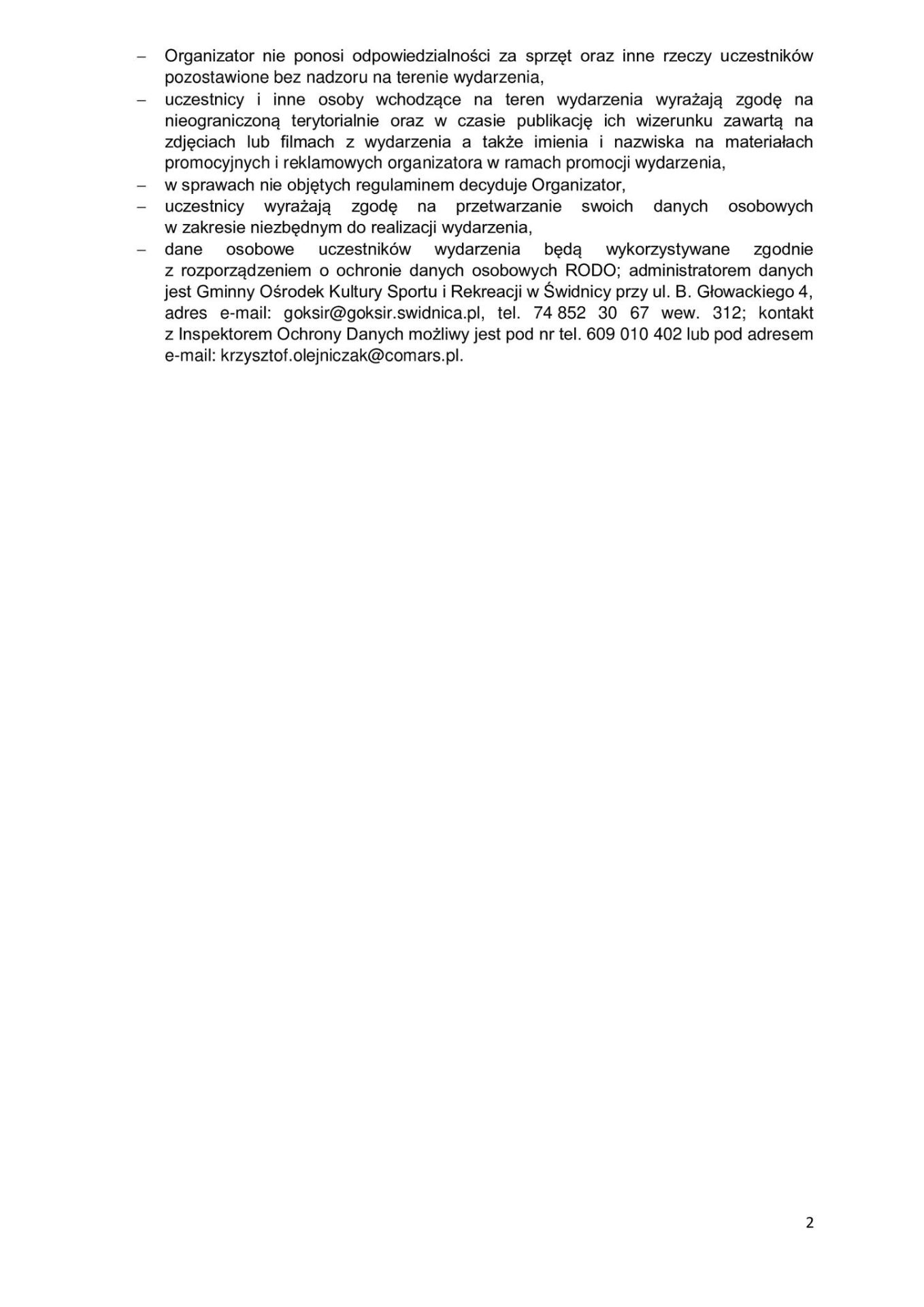 - prosimy o stosowanie się do regulaminu obiektu i poleceń Organizatorów.