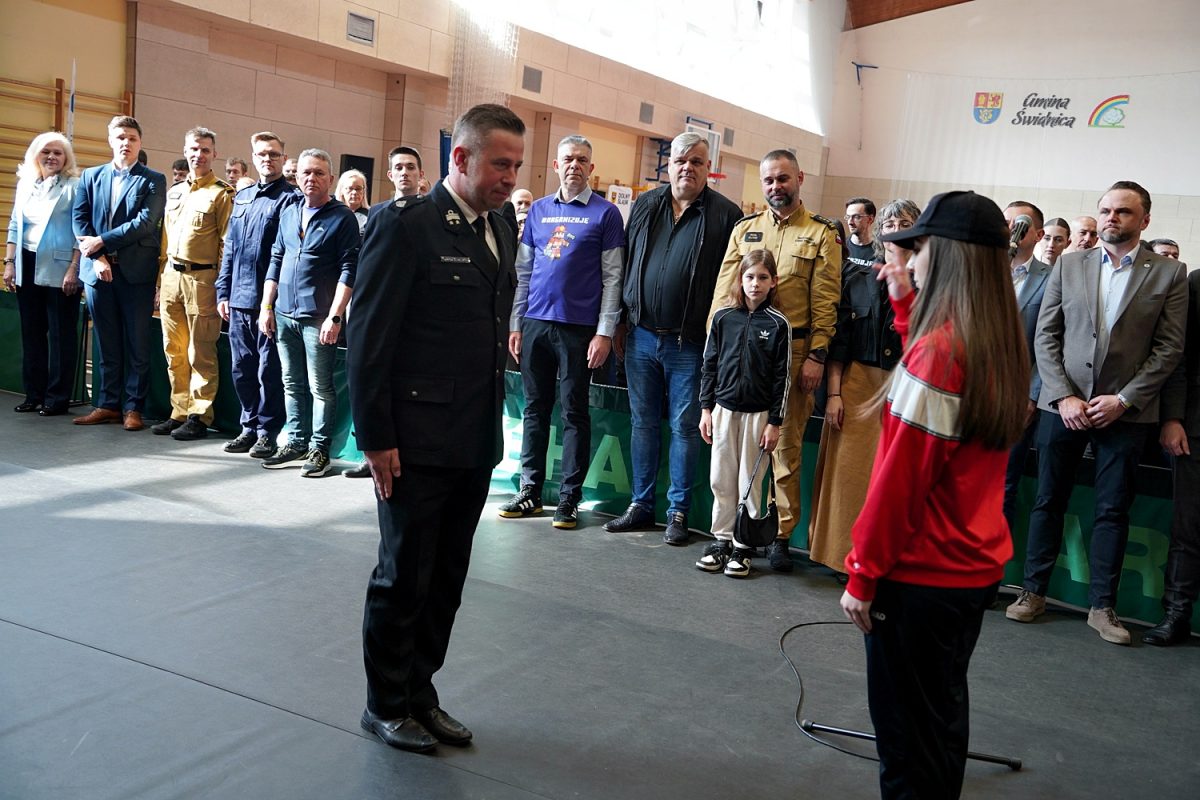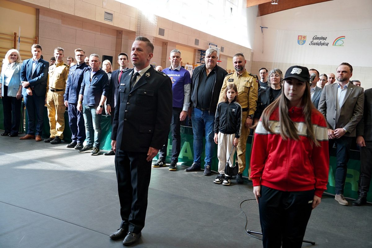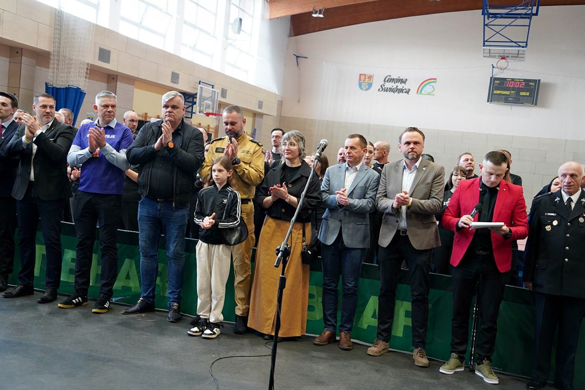 Młodzieżowe Drużyny Pożarnicze to nie tylko sportowa rywalizacja – to przede wszystkim kształtowanie postaw, dyscypliny, odwagi i gotowości do niesienia pomocy drugiemu człowiekowi. Pierwsza edycja zawodów odbyła się w gminie Długołęka i to właśnie wójt Wojciech Błoński przekazał wójtowi gminy Świdnica Bartłomiejowi Strózikowi symboliczne trofeum zawodów.