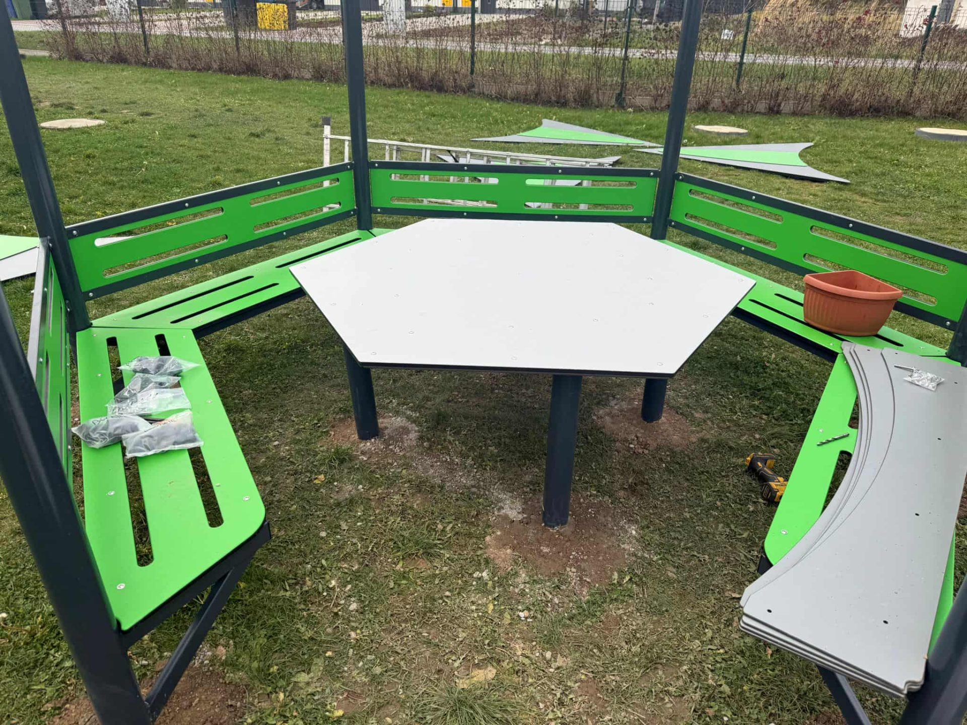- płotek wielofunkcyjny i altana sprzyjają wspólnym grom, nauce współpracy, komunikacji i budowaniu pierwszych przyjaźni;