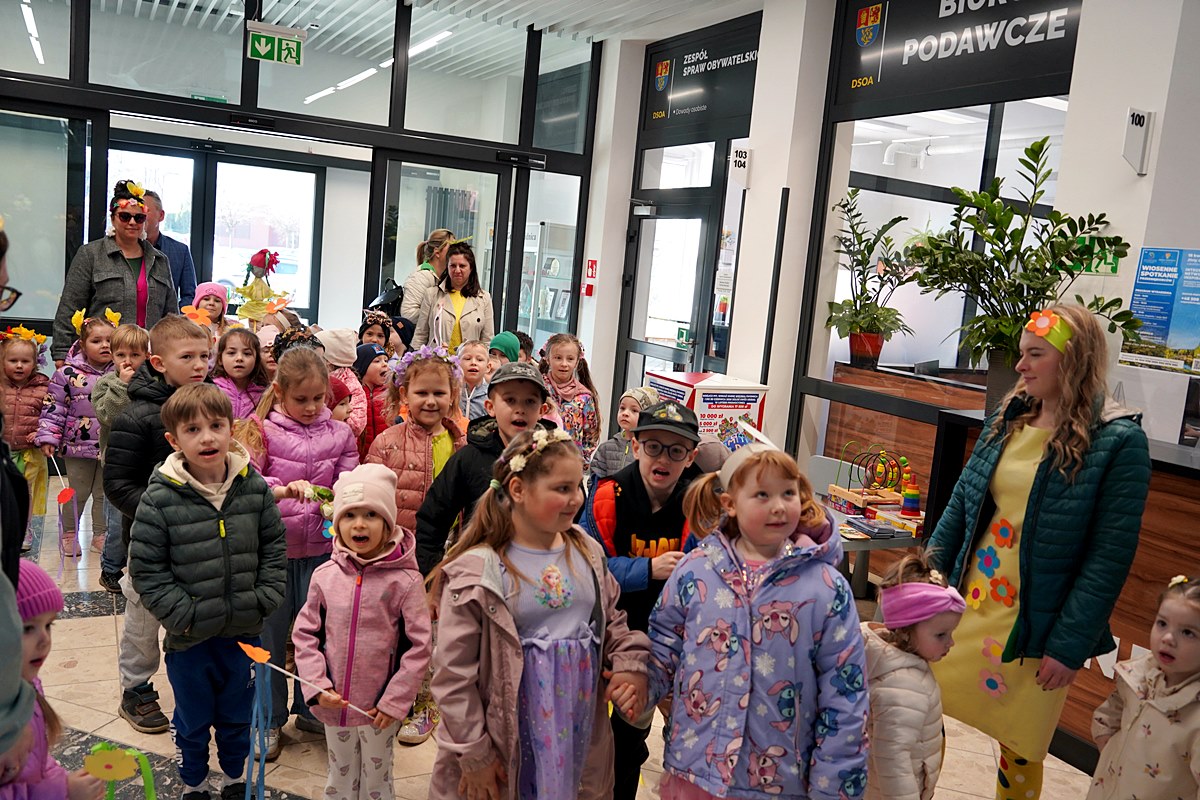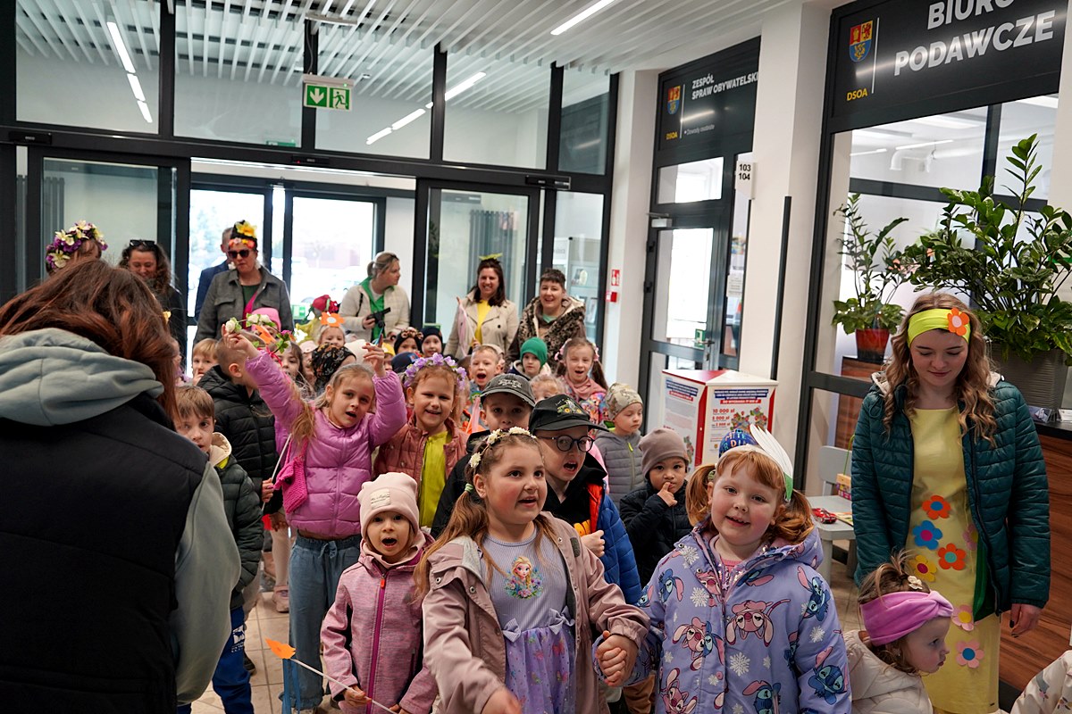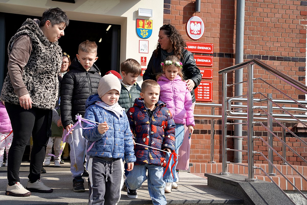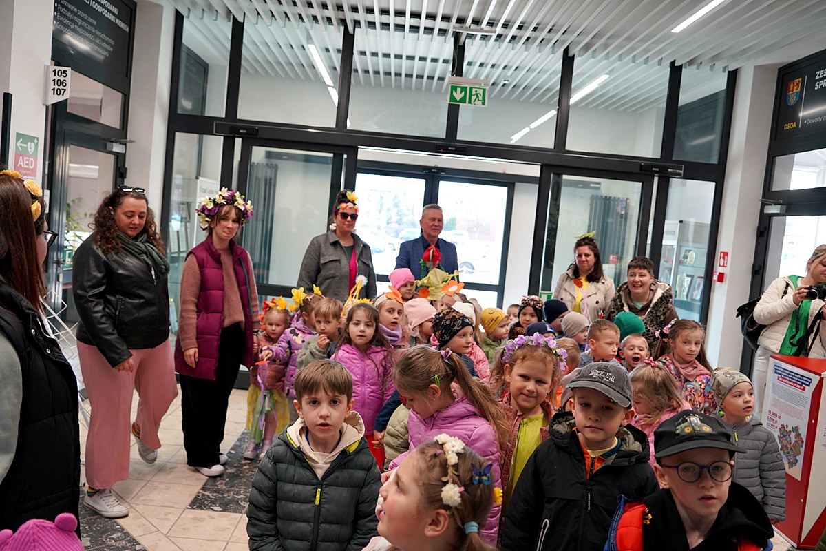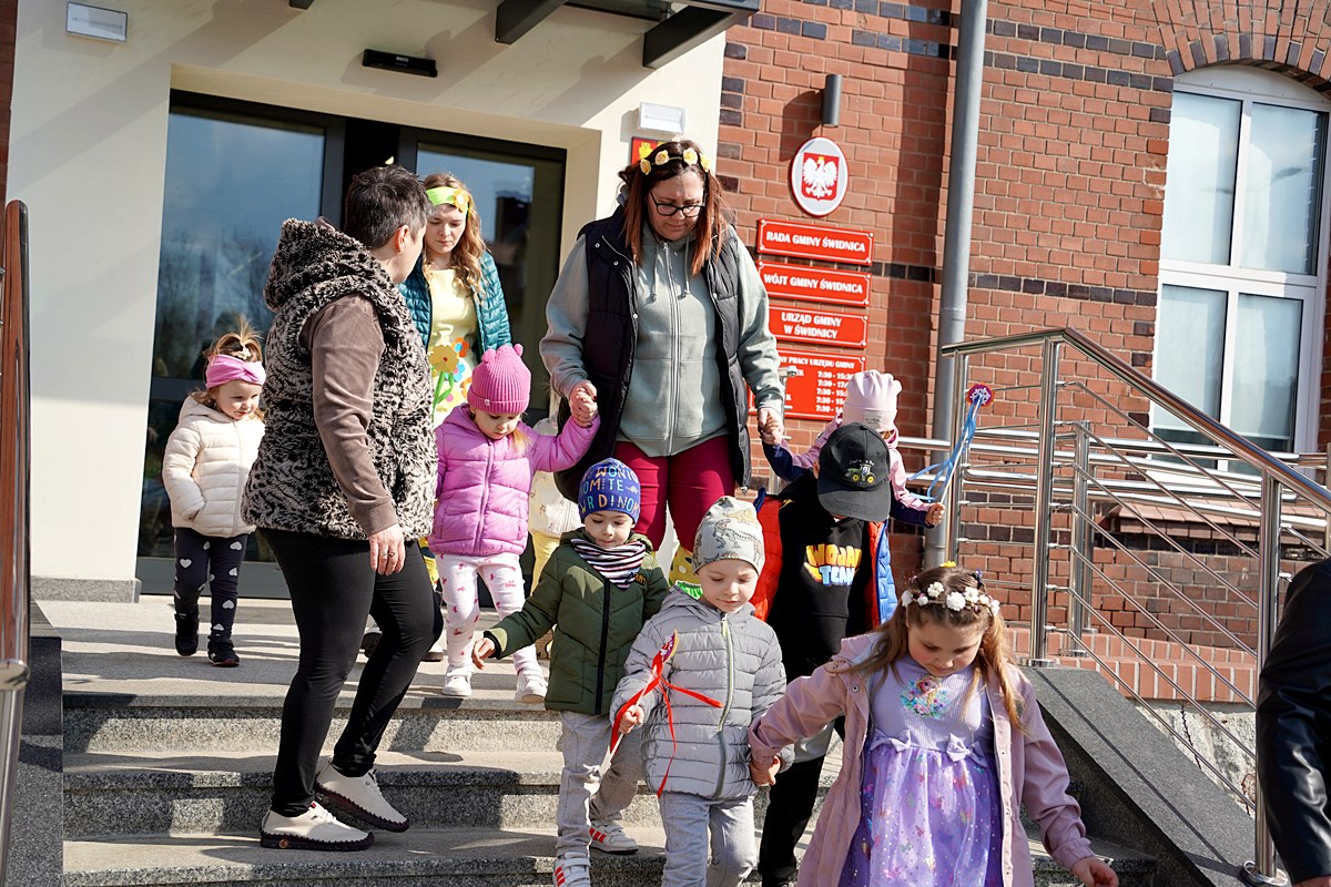 W poniedziałkowy poranek 23 marca maluchy z Przedszkola Niepublicznego „Radosny Delfinek” przy ul. Armii Krajowej 10 w Świdnicy wyruszyły na bardzo ważną misję. Spacerując po parku, postanowiły odwiedzić Urząd Gminy Świdnica w poszukiwaniu wiosny. Pełni nadziei i w kolorowych czapeczkach dotarli aż do urzędu, gdzie czekał na nich zastępca wójta Tadeusz Szarwaryn. Tam, w holu zostali powitani przez uśmiechniętych pracowników.